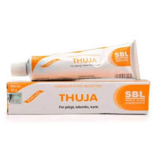 "THUJA CREAM-SBL 25 GM is an effective, homeopathic cream that helps treat skin warts, blemishes, and other imperfections, promoting smooth and clear skin." |